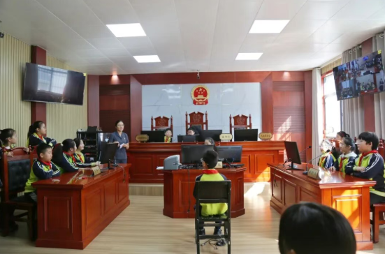 在第四审判庭,同学们仔细聆听了关于法徽、法袍、法槌所承载的象征意义与法治精神的讲解。“现在开庭!”随着一声清脆的法槌声响起,孩子们沉浸式地体验了法官的角色,也真切感受到了法律的威严与神圣。