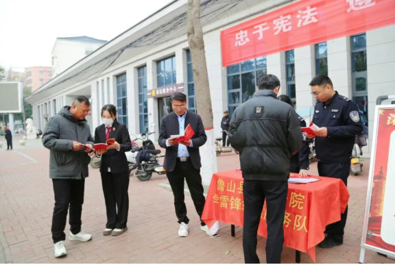 为弘扬宪法精神,传播法治理念,树立宪法权威,营造浓厚的宪法宣传氛围,12月4日,鲁山县法院组织干警开展国家宪法日普法宣传活动。
