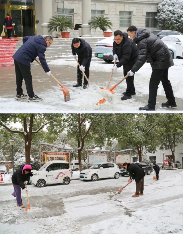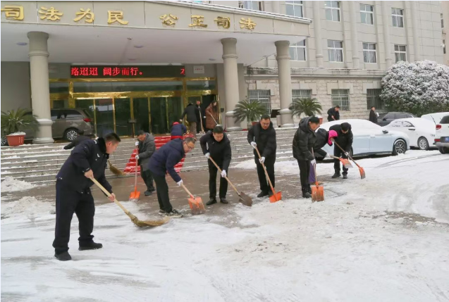 一夜寒风起,清晨雪满庭。银装素裹的美景背后,冰雪也带来了出行安全隐患。为保障正常办公秩序,维护全院干警及办事群众的出行安全,1月20日一大早,鲁山县法院迅速组织干警开展扫雪除冰活动。
